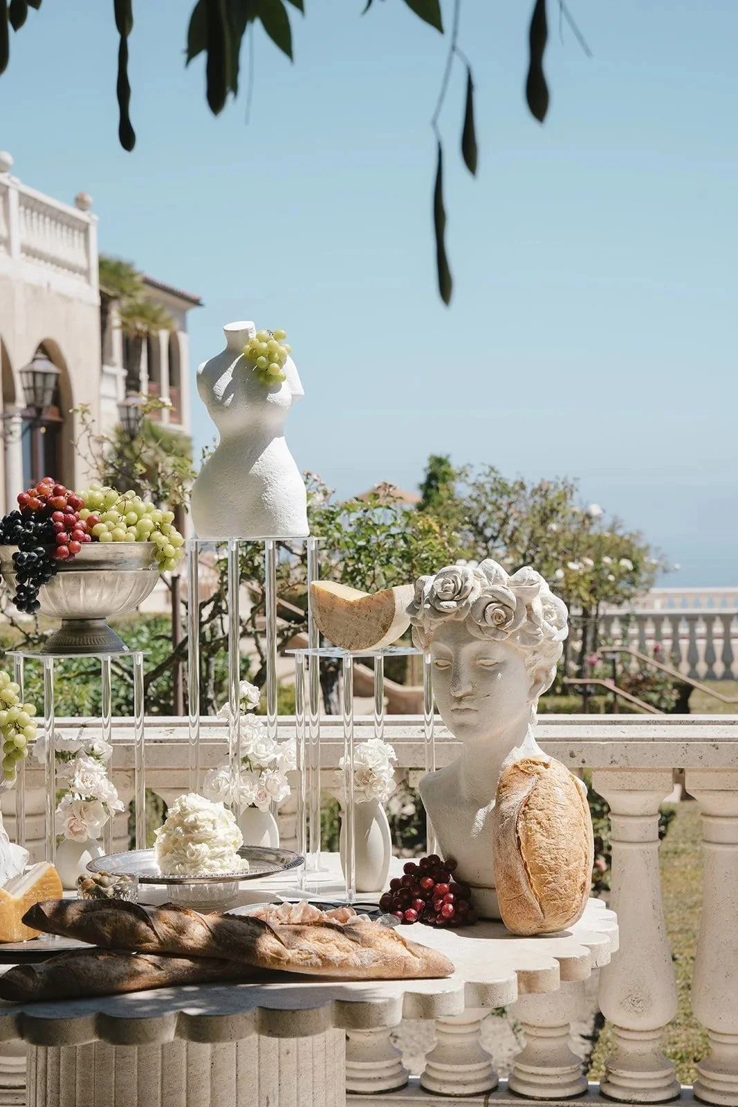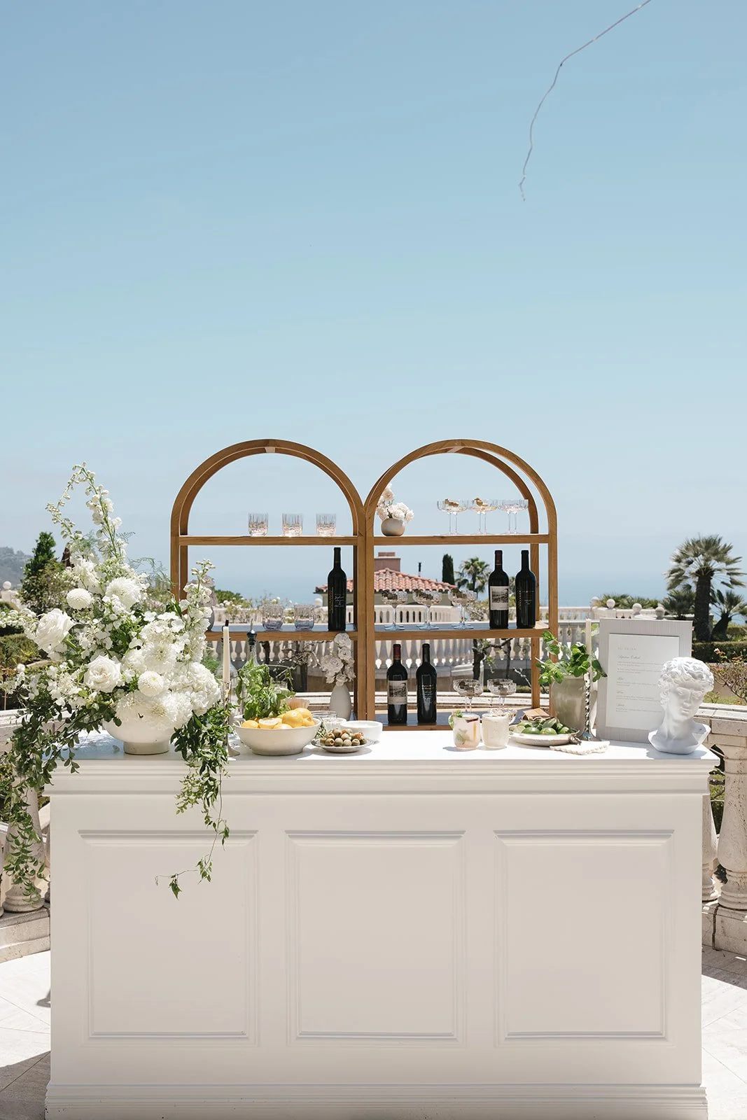 EUROPEAN-INSPIRED WEDDING EDITORIAL AT A PRIVATE ESTATE IN LAGUNA BEACH, CALIFORNIA: OCEAN VIEWS, MAXIMALIST FLORAL DESIGN, REAL ICE SCULPTURES, AND AUTHENTIC ITALIAN ARCHITECTURE